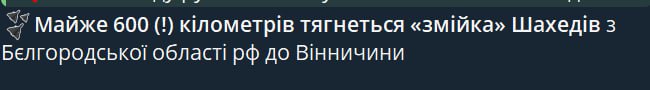 Украинские ТГ-каналы заявляют, что вереница из «Гераней» до Винницкой области сейчас длинною в 600км